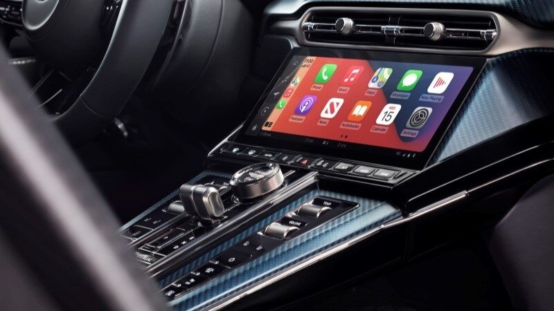 O Vantage Roadster, assim como seu equivalente Coupe, é o modelo mais recente a apresentar o infoentretenimento de última geração da Aston Martin. Criado internamente e introduzido pela primeira vez no DB12, ele é totalmente personalizado e desenvolvido internamente do zero. O sistema combina um sistema multitelas totalmente integrado com conectividade on-line completa, apresentando tecnologia de tela sensível ao toque Pure Black de 10,25” com controle de gestos capacitivos completos de um ou vários dedos. Os comandos da tela sensível ao toque permanecem equilibrados com a sensibilidade tátil dos interruptores físicos, com botões retados para as principais operações mecânicas de seleção de marchas, seleção de direção, aquecimento e ventilação.