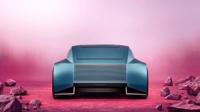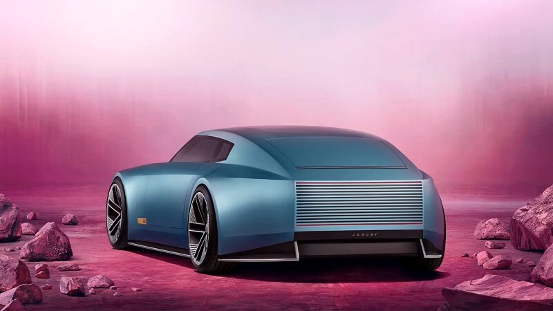 O perfil lateral é dominado por proporções ousadas, com o icônico jaguar, o felino saltador símbolo da marca, gravado a laser em um lingote de latão finalizado à mão em cada lado do carro. Esses lingotes se desdobram de forma teatral para revelar câmeras traseiras, que – assim como as entradas de ar frontais e os portos de carregamento – permanecem ocultos até serem necessários.