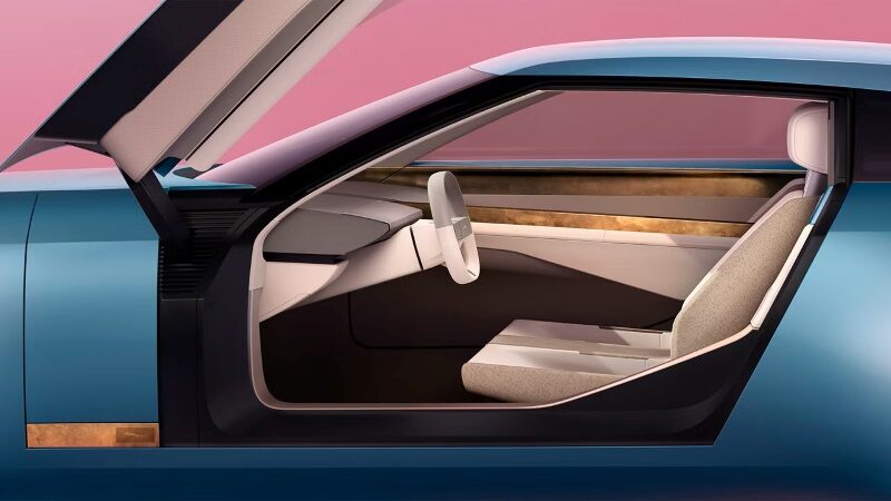 Um par de portas borboleta impressionantes e um porta-malas estilo “pantógrafo” se abrem para revelar um interior modernista que reflete as proporções exuberantes do exterior. A cabine conta com três linhas finalizadas à mão que percorrem todo o comprimento do interior, destacando uma coluna central de 3,2 metros que divide dois painéis de instrumentos flutuantes.