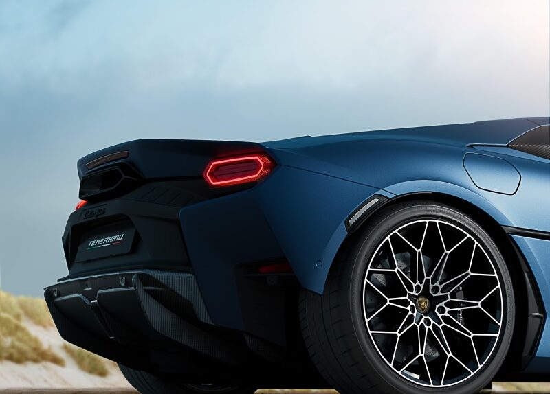 Cada detalhe do exterior foi pensado para equilibrar forma e função. As entradas de ar, o desenho do teto e a traseira musculosa não apenas aumentam a eficiência aerodinâmica, como também ampliam a dramaticidade estética do conjunto, tornando o Temerario um objeto de desejo sob qualquer ângulo.