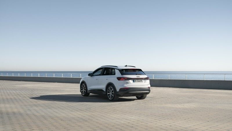 O Audi Q4 e-tron foi o segundo veículo elétrico mais vendido no Reino Unido em 2024. Para ampliar o apelo da família Q4 e-tron da Audi e reduzir o preço, a Audi UK está introduzindo uma nova versão de entrada com uma bateria menor de 63 kWh. Isso permite um alcance elétrico de até 402 km no estilo de carroceria SUV e 415 km no Sportback. Em condições ideais, o estado de carga da bateria (SoC) aumenta de 10% para 80% em apenas 24 minutos ao carregar em uma estação de carregamento rápido. Até 150 km (Sportback: 154 km) de autonomia podem ser adicionados à bateria em apenas 10 minutos. A potência máxima de carregamento em corrente contínua é de 165 kW. Isso é ideal em uma estação de carregamento como as da IONITY, reforçando o compromisso com o elétrico premium.